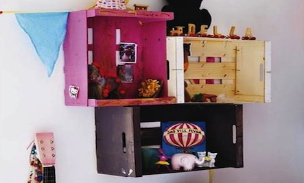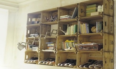 Le cassette della frutta sono quasi diventate un classico, quelle più alte da mele per intendersi, reperibili al mercato ortofrutticolo, in cambio di qualche euro, si possono utilizzare come una vera libreria, parola mia e di mia figlia che ce l’ha in camera. Niente di più semplice, si prendono le cassette, in buone condizioni, si lasciano grezze, avendo cura di pulirle bene e di lisciarle con carta a vetro, oppure si dipingono del colore che più si preferisce e si appendono al muro verticali o orizzontali, fissandole con semplici viti e tasselli.