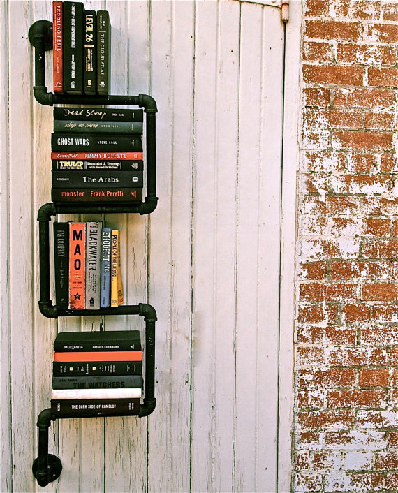Avete mai pesnsato che i comuni tubi industriali potrebbero servire a costruire una libreria moderna e di grande effetto e fai da te? Lo stile è molto newyorkese e perfetto per un loft o comunque una location moderna. Con i tubi industriali si possono realizzare librerie di ogni forma e lunghezza, grazie agli snodi, che servono per le curve dei tubi stessi, con i quali potete dare qualsiasi direzione.