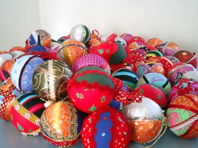 Prendete un foglio di carta crespa di colore fucsia e adagiatevi sopra dell’ovatta; subito dopo, richiudete tutto, facendo attanzione a mantenere il cotone idrofilo all’interno. A questo punto, magari dopo aver creato un cartamodello se vi viene più comodo, disegnate un cerchio con la matita, che abbia un diametro di circa dieci centimetri e passatevi intorno la spillatrice. Cercate di fissare i punti metallici in modo che, alla fine, il contorno possa dare l’idea di una finta cucitura. Prendete ora la carta crespa rosa e disegnatevi un cerchietto molto piccolo che andrete ad incollare sulla pallina di carta fucsia precedentemente costruita. Attenzione a non bagnare altri lati della carta con le mani umide, altrimenti rischierete di farla sbiadire o rovinare. Ripetete la stessa operazione con tutti gli altri colori, in modo da arricchire la base color fucsia. Con il pennarello giallo o, meglio ancora, oro, rifinite i cerchietti con dei finti punti e, se avete in casa delle perline o dei brillantini, potete applicarli come elemento aggiuntivo. Per impreziosire la pallina, poi, prendete la fettuccia rossa e incollatela alla base in modo da poterla appendere. Con un altro pezzo di fettuccia, realizzate un piccolo fiocco che applicherete alla base, per evitare che si veda l’antiestetico punto in cui avete attaccato filo e addobbo. La vostra nuova creazione è pronta.