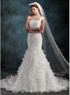 Prima di tutto, fatevi un giro su Sposalicious e seguite l’utilissima Guida al matrimonio perfetto, per capire quale modello acquistare secondo il vostro fisico, poi mettetevi comode, godetevi la gallery e scegliete l’abito perfetto per voi. Monospalla con drappeggi in tralice e rouches in organza, per mettere in evidenza la silhouette, mentre corpetto a cuore strutturato con gonna a balze in tulle.